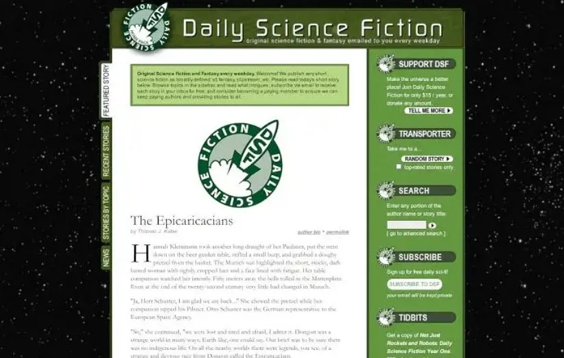 همانطور که از نام این وبسایت پیداست، بهترین داستانهای تخیلی به صورت روزانه در Daily Science Fiction منتشر میشود که شما میتوانید به صورت رایگان به آنها دسترسی داشته باشید. اکثر داستانهای ارائه شدهی این وبسایت ژانری علمی – تخیلی دارند، پس انتظار نداشته باشید که داستانهای فانتزی یا ترسناک را در این وبسایت پیدا کنید. با این حال، داستانهای موجود در سایت بسیار متفاوت هستند، بنابراین لازم نیست نگران یکسان به نظر رسیدن همهی آنها باشید.