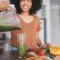 - حالا نوبت به اضافه کردن مواد به مخلوطکن میرسد. چغندر، توتهای یخزده، موز، سیب و کیوی را داخل مخلوطکن بریزید.