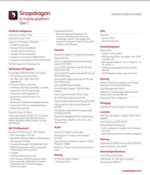 مشخصات کامل اسنپدراگون ۶ نسل ۱ فاش شد