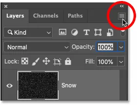 با انجام این کار، فتوشاپ لایهی Snow را به رنگ مشکی در می آورد. و از آنجایی که لایه Snow در بالای لایهی پسزمینه (عکس اصلی) شما است، شما تنها عکسی سیاه را میبینید و عکس اصلی زیر آن پنهان میشود.