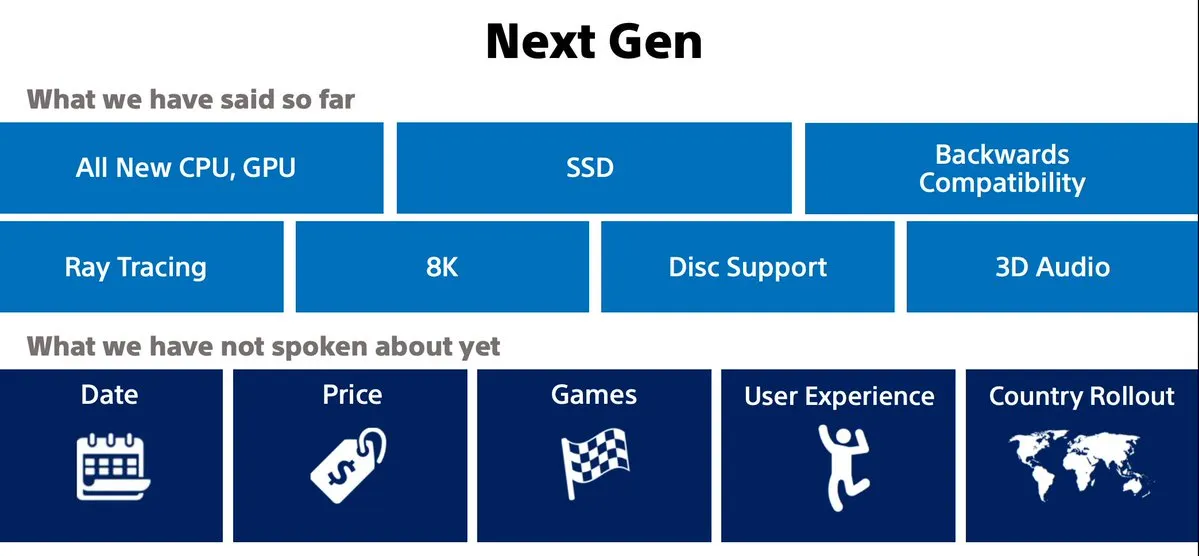 سونی میگوید از نظر آنها پشتیبانی از بازیهای نسل قبلی، یا همان قابلیت Backwards Compatibility اهمیت بسیاری دارد و در نسل بعد، تمرکز بسیاری روی این موضوع خواهند داشت. از طرفی سونی دوباره تاکید کرده نسل بعدی از بازیهای دیسکی، وضوح تصویر 8K و صدای سه بعدی و اساسدی و قابلیت گرافیکی Ray Tracing هم پشتیبانی خواهد کرد. از بین بردن صفحههای لودینگ، یکی از تمرکزهای سونی در نسل بعد خواهد بود. سونی در راستای بهبود بازیها و استفاده بهینه از قابلیتهای نسل بعد، رابطهی خود با شرکتهای بازیسازی را هم بهتر و بیشتر خواهد کرد.