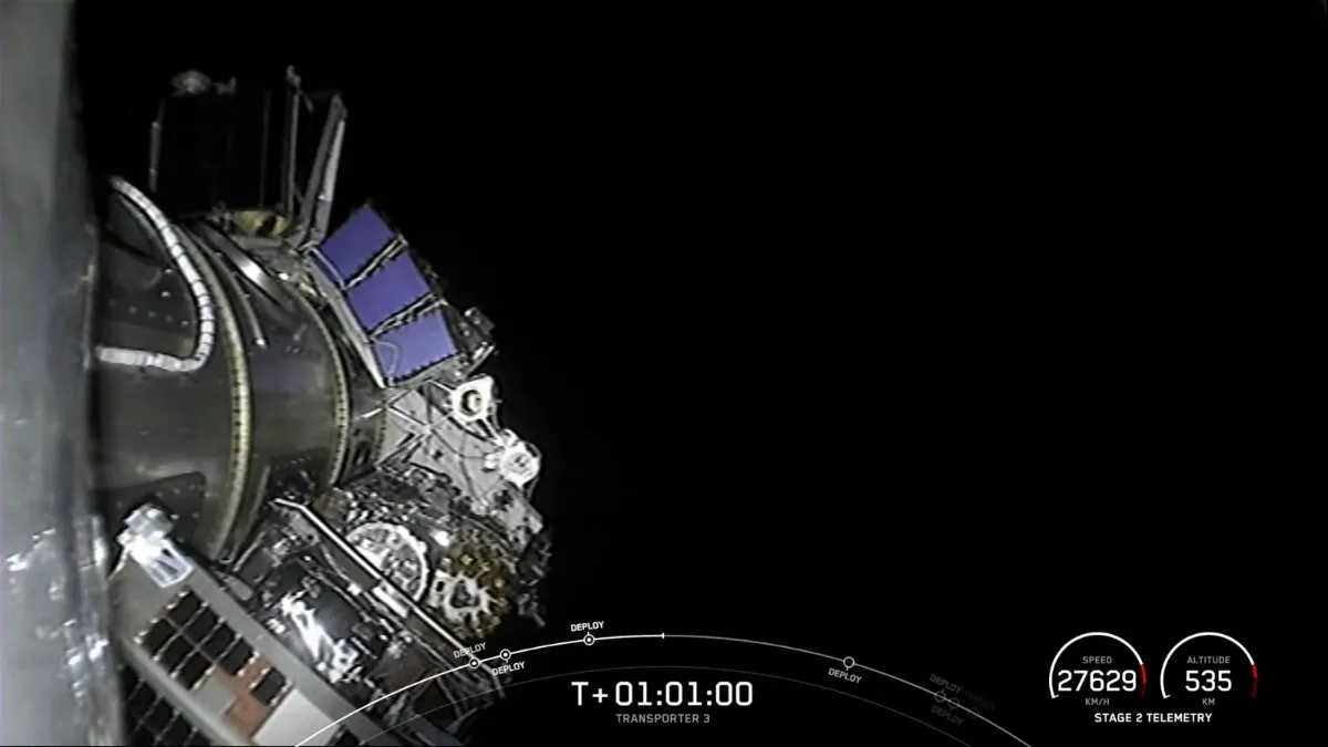 این پرتاب اسپیسایکس امروز پنجشنبه 13 ژانویه (23 دی) در ساعت 10:25 منطقهی زمانی شرقی (18:55 به وقت تهران)، توسط یک موشک دو مرحلهای «فالکون 9» (Falcon 9) به نام «ترنسپورتر-3» (Transporter-3) است که از مجتمع پرتاب فضایی 40 در ایستگاه نیروی فضایی در کیپ کاناورال فلوریدا به فضا پرتاب شد.