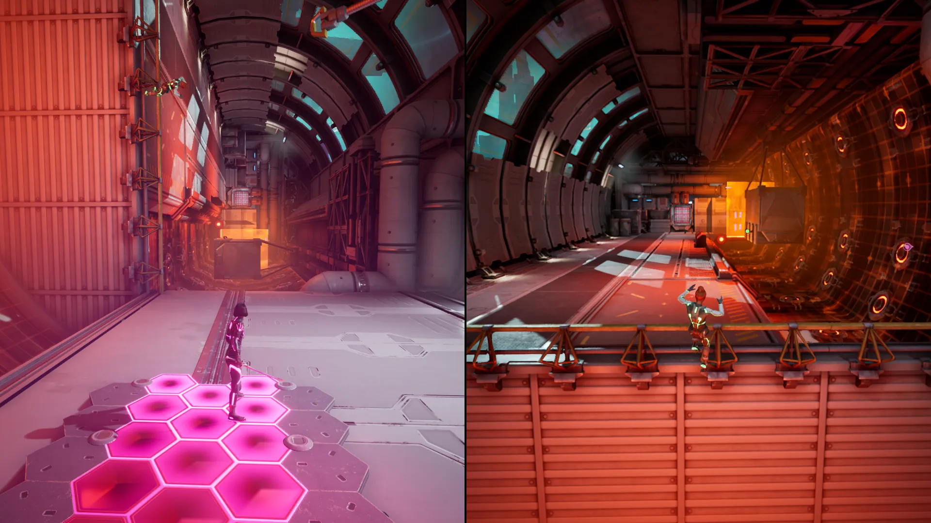 همانطور که بالاتر هم گفتم، شما نمیتوانید این بازی کوآپ را به تنهایی انجام دهید و نیاز به بازیکن دومی دارید تا با او چه به صورت لوکال یا آنلاین در داستان پیش بروید که خوشبختانه ویژگی کراس پلی بین همه پلتفرمها وجود دارد و از این نظر نسبت به It Takes Two نکتهی مثبتی محسوب میشود. نکته جالب این است که همانند بازیهای قبلی، شما و دوستتان تنها به خرید یک نسخه از بازی نیاز دارید. در هنگام تجربهی بازی، اسپلیت فیکشن بسیار شبیه به It Takes Two احساس میشود. این موضوع را به عنوان یک نکتهی منفی نمیگویم، زیرا اثر قبلی هیزلایت به سطح بسیار بالایی از کیفیت تولید دست یافت و سبکهای متنوعی از گیمپلی از تیراندازی و رانندگی تا پلتفرمر و غیره را شامل میشد که اینجا نیز همچنان وجود دارند.