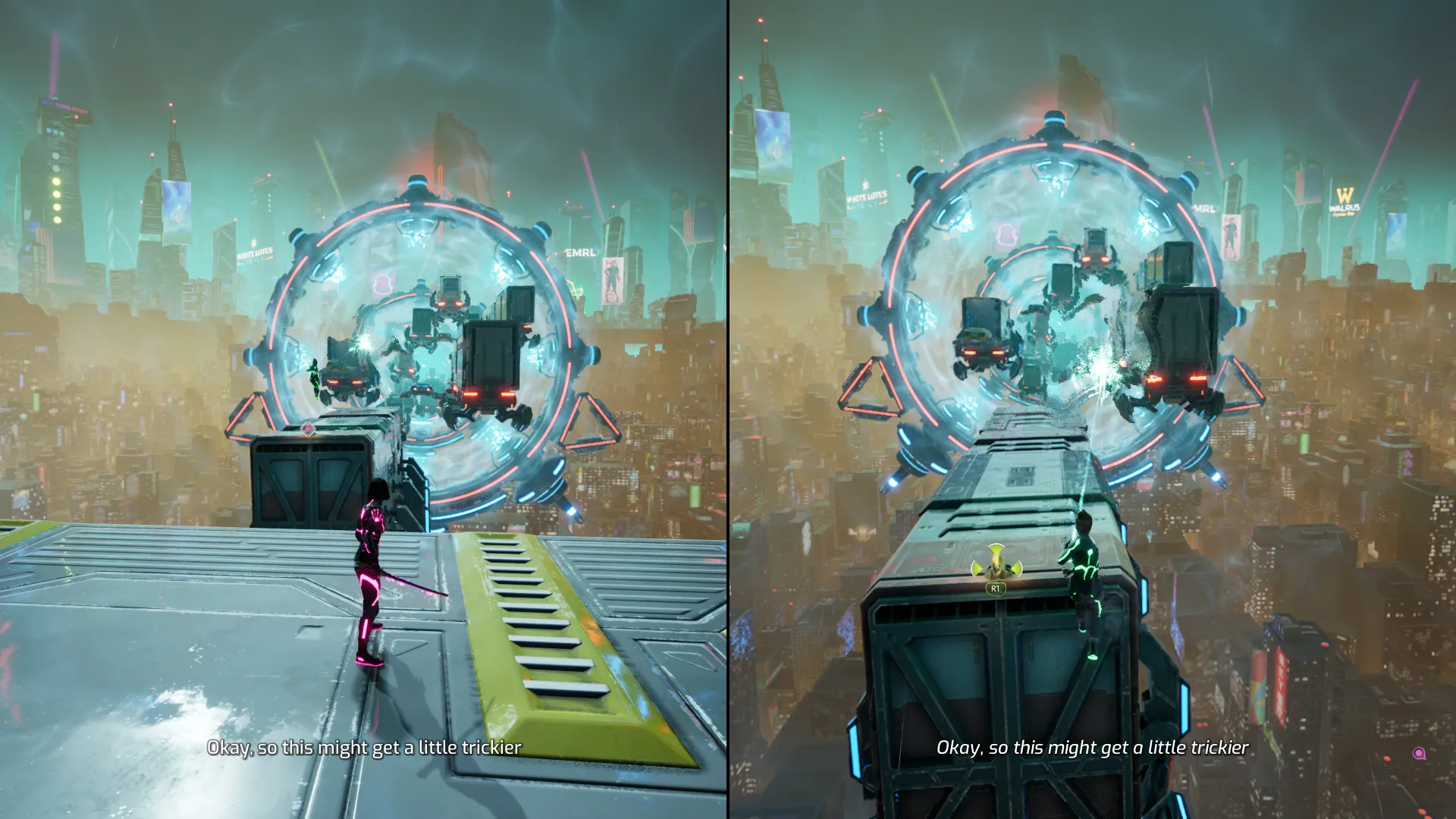 اسپلیت فیکشن برای کنسولهای نسل هشتم و نینتندو سوییچ در دسترس نیست و این موضوع دلیل خاص خود را دارد. این بازی نه تنها از نظر گیمپلی ارتقا یافته، بلکه از لحاظ بصری و صوتی نیز سطح بالاتری را نسبت به آثار نسل قبل ارائه میدهد. بازی در کنسولهای پلیاستیشن 5 و ایکسباکس سری ایکس با رزولوشن 4K و نرخ فریم 60 اجرا میشود و روی تمامی پلتفرمها نیز واقعاً به خوبی بهینه شده است. در طول بازی به شخصه باگ خاصی مشاهده نکردم و مواردی نظیر افت فریم نیز مشاهده نشد.