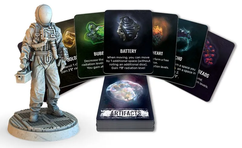 تصاویر منتشر شده توسط Awaken Realms پیش نمایشی از اجزای بازی مانند مینیاتورها، کارتها و توکنها را نشان میدهد. مینیاتورهایی که تاکنون فاش شدهاند شامل چندین استاکر، یک سرباز، یک اسنورک (Snork) با ماسک گاز، یک بلادساکر (Bloodsucker ) و یک سودوجاینت (Pseudogiant) است. این مینیاتورها زیبا به نظر میرسد و ظاهرا محصول نهایی قرار است از نظر بصری چشمنواز باشد.