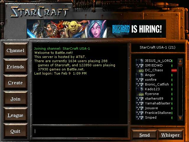 حالا صحنه آماده شده بود. هوآنگ هیونگ جون متوجه شد دست روی چیزی با پتانسیل بیپایان گذاشته و برای همین خیلی زود یک لیگ تمامعیار ملی برای استارکرفت ترتیب داد. بازیکنان ابتدا از کافینتهای محلی شروع میکردند و با طی کردن پلههای ترقی میتوانستند به رقابت نهایی، به Tooniverse Starleague برسند، که در طی پنج مسابقه مشخص میشد بهترین بازیکن استارکرفت در کشور کیست. جالب است که وقتی برای اولین بار این مسابقه در سال ۲۰۰۰ برگزار شد، نفر اول یک بازیکن کانادایی شد، بازیکنی به نام Guillaume Patry که تازه سال پیش به کره جنوبی مهاجرت کرده بود.