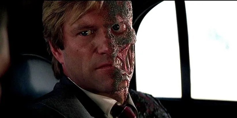 بیشک یکی از بدشانسترین دشمنان بتمن، دو چهره است. او در ابتدای فیلم «بتمن» به عنوان یک دادستان جدی و صادق ظاهر میشود که زشت شدن چهرهاش سبب گردید دیوانه شود و لذا بینندگان به راحتی توانستند حال بد او را درک کنند چراکه شاید هر کسی به جای او بود جنون میگرفت. با توجه به اینکه هاروی دنت به عنوان یکی از دشمنان درجهی یک بتمن شناخته شده، کاملا منطقی است که او در فیلم بعدی بتمن نیز در ابتدا به عنوان یکی از متحدان بتمن ظاهر شود و بعد نیز به سرنوشت شومش گرفتار گردد.