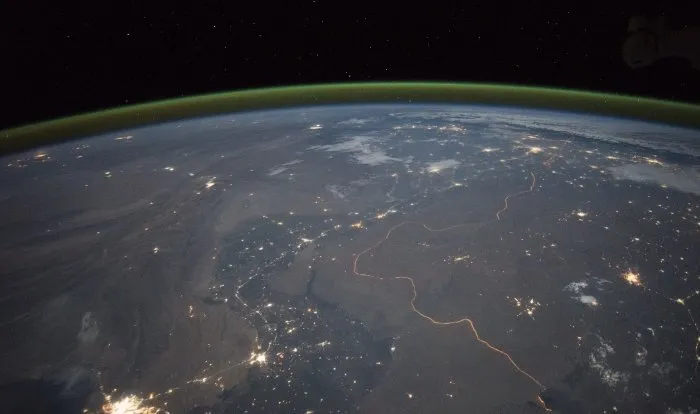 شفق قطبی تنها یک بخش از این عکس است. اگر به میانهی تصویر توجه کنید، نوار کمرنگ زرد و قرمزی را به صورت منحنی بالای سیارهمان میبینید. این پدیده «هواتاب» (Airglow) نام دارد و هرچند خفیفتر از شفق قطبی است اما به همان اندازه جالب توجه است.