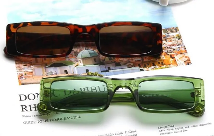 - صورتهای مربعی و مستطیلی شکل؛ صورتهای مربعی و مستطیلی شکل اغلب مشخصههای برجسته و زاویهدار دارند. همچنین در این نوع صورتها شاهد خطوطی صاف و مستقیم از پیشانی به تا فک هستیم. با توجه به همین شکل ظاهری، پیشنهاد میکنیم که از فریمهای گرد و نازک که کنارههای آن کمی پهنتر از دیگر قسمتهای عینک است، استفاده کنید. عینک آفتابیهای گرد، چشم گربهای و بیضی گزینههای مناسبی در بین استایلهای مختلف است. چرا که زوایای سختِ صورت مربعی و مستطیلی شکل را نرم جلوه میدهد (چه بهتر اگر فریم رنگی هم باشد) و تعادل مناسبی را ایجاد میکند. لازم به ذکر است که صورتهای لوزی شکل هم از این قاعده مستثنی نیستند.