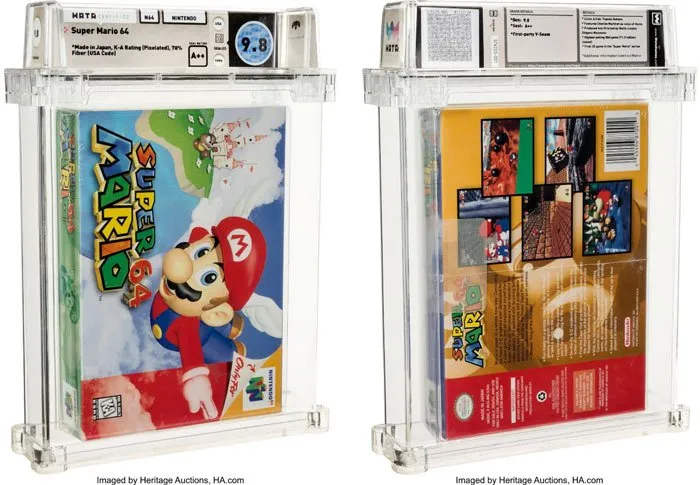 نسخهای دستنخورده از بازی سوپر ماریو 64 که برای کنسول نینتندو 64 منتشر شده است، با قیمت 1٫56 میلیون دلار به فروش رسیده است. این رقم اختلاف قابلتوجهی با رکورد قبلی دارد و بهراحتی سوپر ماریو 64 را گرانترین اثری میکند که در یک مزایده به فروش رفته است.