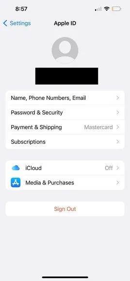 برخی از افراد مدعی شدهاند خارج شدن از حساب کاربری iCloud آنها مشکل هات اسپات را برطرف کرده است. کافی است به تنظیمات رفته و روی نام خود کلیک کنید و با کلیک روی گزینهی Sign Out، از حساب خود خارج شوید. حالا دوباره وارد حساب خود شوید و ببینید آیا هات اسپات کار میکند یا خیر.