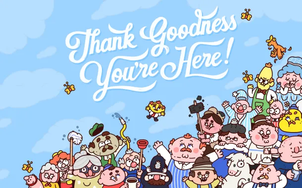 Thank Goodness You’re Here! یک بازی کمدی ماجراجویی بامزه است که به مرور زمان و با پیشروی بازیکنها در شهر عجیب بارنزورث (Barnsworth) جنبههای مختلفی از آن نمایان میشود. با اتمام هر کار عجیب و غریب، مناطق جدیدی از شهر باز میشوند، افراد غریبه و کارهای آنها در دسترس قرار میگیرند و عقربههای ساعت به زمان جلسه بزرگ فروشنده ما نزدیک میشود. ساکنان رنگارنگ این شهر با انیمیشنهای دستی پر جنبوجوش، دیالوگهایی که کاملاً صداگذاری و دوبله شدهاند، به زندگی خود در این شهر ادامه میدهند.