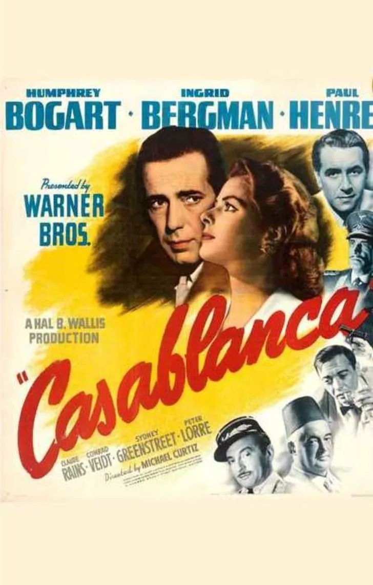 کازابلانکا احتمالاً بیش از همهی فیلمهای این لیست، بینیاز به توصیف برای مخاطبان ایرانی باشد. صرف شهرت فیلم، میتواند ارزش پوسترش را هم برای ما توجیه کند. این فیلم را مایکل کورتیز با حضور ستارگان بیبدیل هالیوود مانند هامفری بوگارت و اینگرید برگمن ساخت. این فیلم که در حال و هوای دوران جنگ میگذرد، داستان مواجههی ریک با معشوقهی سابق و همسر فراری معشوقهاش است.