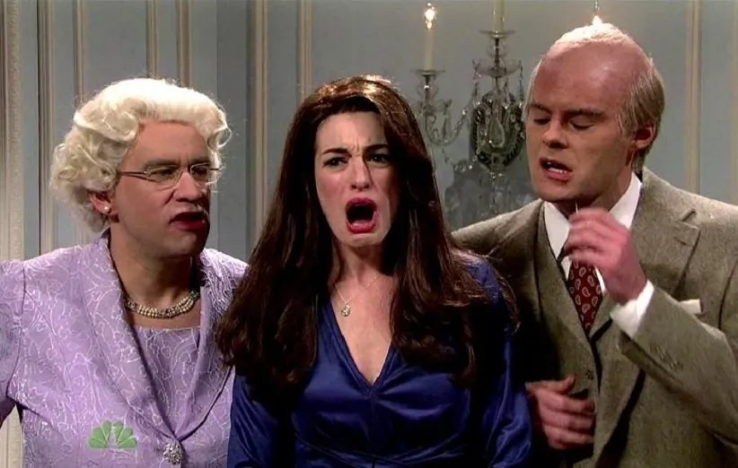 یکی از کمدیترین محصولات نمایشی که به شخصیت ملکه الیزابت پرداخته، برنامه زنده و کمدی «شنبه شب زنده» در آمریکا است. این برنامه شوی شبانهای است که از سال 1975 تاکنون هر هفته از شبکه ان بی سی آمریکا پخش میشود. معمولا علاوه بر حضور یک میزبان و خواننده، قطعههای نمایشی هم در این برنامه اجرا میشود که بیشتر نقد سیاسی و فرهنگی است. در سال 2010 و در جریان ازدواج کیت میدلتون و ویلیام، نوه ملکه الیزابت، یک قطعه نمایشی با نگاه هجوآمیز به این دیدار در سریال «شنبه شب زنده» اجرا شد. فرد ارمیسن، بازیگر آمریکایی که ریشه ایرانی دارد، با زنپوش شدن، نقش ملکه را برعهده گرفت و یکی از تصویرهای مشهور و کمدی از این سیاستمدار مشهور جهان را عرضه کرد.