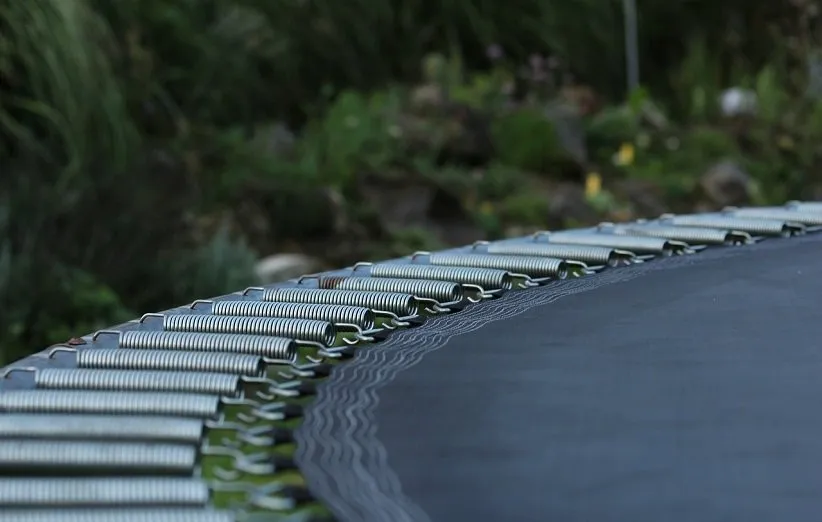حالت ارتجاعی ترامپولین میتواند با کش، بند بانجی یا فنر به وجود بیاید. فنرها معمولا انتخاب بهتری هستند و استحکام بیشتری دارند. با توجه به دیدگاه کارشناسان، ترامپولین انتخابی شما باید دستکم 32 فنر مخروطیشکل داشته باشد. این منجر میشود انعطافپذیری ترامپولین افزایش پیدا کند و شما بتوانید جهشهای یکنواختتری داشته باشید. همچنین بهتر است جنس آنها هم فولادی باشد تا دوام بیشتری پیدا کنند.