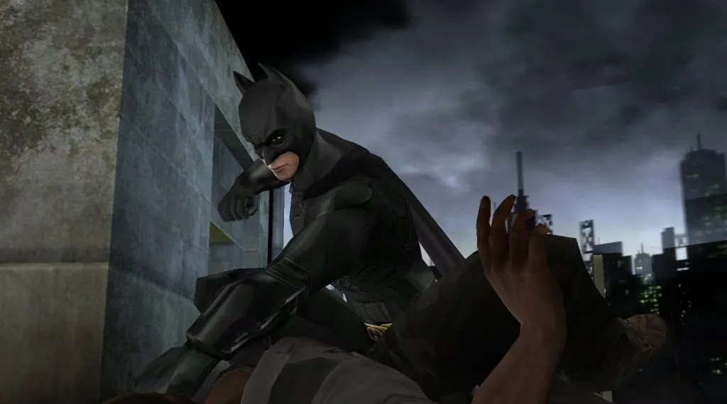 در دوران شکوفایی سری اسپلینتر سل، شرکت یوروکام (Eurocom) از سهگانهی شوالیهی تاریکی نسخهی Batman Begins را برای اقتباس انتخاب کرد و حتی تا جایی پیش رفت که به بتمن یک دوربین ویژه داد تا قبل از ورود به اتاقها بتواند درون آنها را بررسی کند. در حالی که طرفداران سرسخت سم فیشر با این مورد در بازی چندان خوشحال نبودند، حرکت در سایهها به عنوان شوالیهی تاریکی بسیار لذتبخش کار شده و با استفاده از محیط و مجموعه ابزارهای بتمن به راحتی میتوانید اوج مخفیکاری را تجربه کنید.