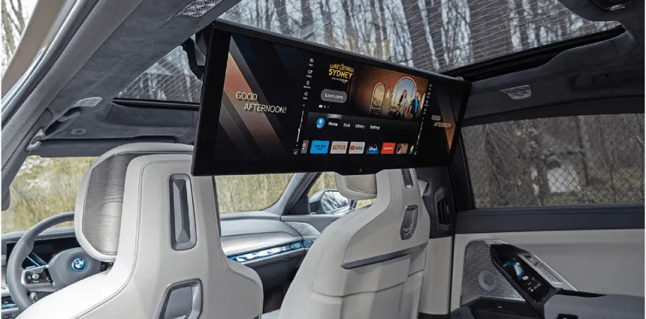 نکته جالبتر ماجرا جایی است که این صفحه نمایش بزرگ به صورت تاشو میتواند جمع شود و روی سقف قرار بگیرد. از طرف دیگر با استفاده از آفتابگیرهای موجود در شیشههای عقب این خودرو، شما میتوانید سینما را به معنای واقعی کلمه در ماشین خود تجربه کنید. سقف i7 به صورت کامل شیشهای (پانوراما) است تا در کنار استفاده از نورهای LED داخلی این خودرو، لذت رانندگی با یک خودروی لوکس برقی را برای شما بهتر و زیباتر رقم بزند.