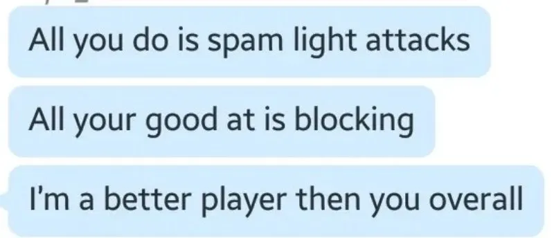 جک تصمیم میگیرد که او هنوز یک بازیکن عالی تکن است و جک معتقد است که امتیازات خود را به طور منصفانه از طریق خوب بودن در بازی بدست آورده است، بنابراین خوشحال است که با عصبانیت دست از کار بکشد. بیایید از جک فاصله بگیریم و به چند نمونه از ریج کوییت در دنیای واقعی نگاه کنیم. ریج کوییت گاهی اوقات میتواند با ارسال پیامهای توهینآمیز توسط فردی که ریج کوییت کرده همراه باشد. در ادامه سه مثال نسبتا مودبانه از این مورد در قالب یک تصویر آمده است.