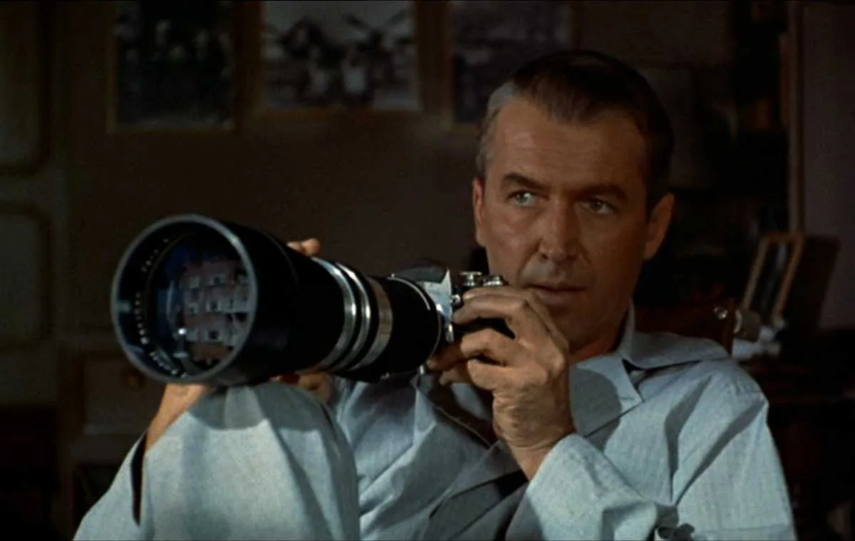 «یک عکاس بر اثر حادثهای پایش شکسته و مجبور است تا زمان بهبودی در خانه و روی صندلی چرخدار بماند. او روزها را به فضولی و چشمچرانی در زندگی همسایههایش به وسیلهی دوربین عکاسی خود میگذراند. تا اینکه تصور میکند در همسایگی جنایتی در حال وقوع است اما به دلیل شکستگی پا امکان خروج از خانه را ندارد …»