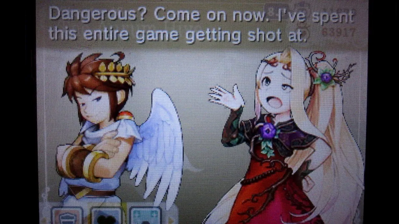 این هم یکی دیگر از نمونههایی است که شخصیت بازی کاملاً از اینکه در بازی ویدئویی قرار دارد، باخبر است. با این تفاوت که او این هشیاری را به سطح دیگری میبرد. شخصیت اصلی بازی پیت، از همان آغاز کار دیوار چهارم را میشکند و میپرسد ایکاروس در Kid Icarus کیست. پس از این او از مکانیکهای گیمپلی بازی در کنار دیگر چیزها گله میکند. یکی دیگر از نمونههای شکستن دیوار چهارم اشاره به دیگر جهانهای بازیهای نینتندو مانند متروید و سوپر اسمش برادرز است. شخصیتهای دیگری نیز در بازی حضور دارند که دیوار چهارم را میشکنند.