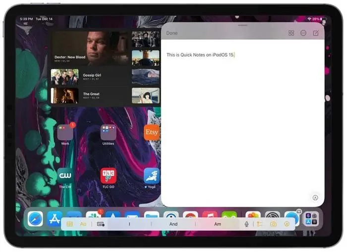 با iOS 15، اپل از قابلیت جدید Quick Notes رونمایی کرد که به زبان ساده به کاربران اجازه میدهد راحتتر از گذشته و به سرعت یادداشتبرداری کنند. برای دسترسی به این قابلیت، از گوشهی سمت راست نمایشگر به صورت مورب سوایپ کنید. بعد از یادداشتبرداری، اگر این پنجره را به سمت کنار بکشانید، به طور موقت مخفی میشود و اگر یادداشتبرداری تمام شده، کافیست روی Done ضربه بزنید.