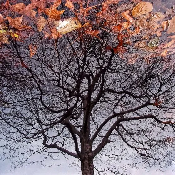 همچنین میتوانید با چرخش عکس از سمت بالا به سمت پایین در هنگام ویرایش، عکسهای خلاقانهتری را از این انعکاس ثبت شده در چالهی آب به وجود بیاورید. انجام دادن این کار باعث میشود که بیننده از دیدن انعکاس محیط در عکس لذت ببرد.