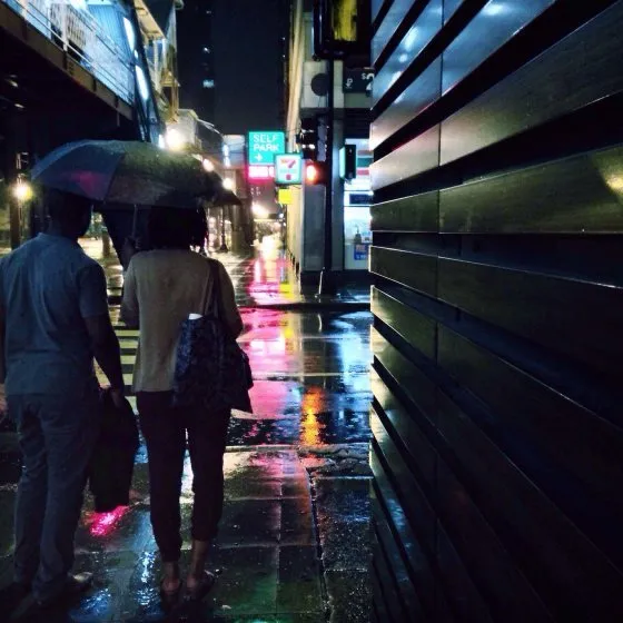 بازتاب محیط توسط سطح خیس خیابان در شب هم بسیار چشمنواز است. روشن بودن چراغهای خیابان و لامپهای نئون مغازهها و بازتاب آنها توسط سطح خیس خیابان در نهایت باعث میشود که عکس ثبت شده دارای تابش چشمنواز و گرمی در قسمت پایینی خود باشد.