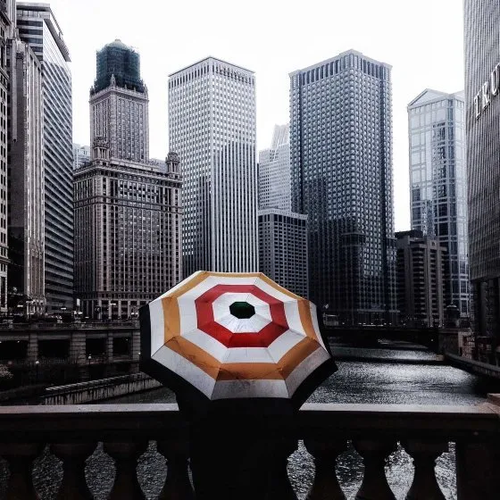 همچنین روزهای بارانی به طور معمول دارای حالت تاریک و خاکستری رنگ هستند. پس وجود یک چتر رنگی در عکس میتواند به صورت ویژهای توجه بیننده را در محیط خاکستری اطرافش به خود جلب کند و چشم هر بینندهای را بهسرعت به سمت خود بکشاند.