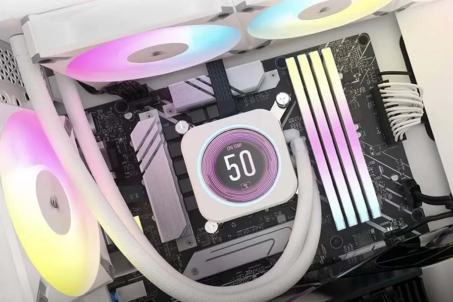 تقریبا تمام استریمرها و افرادی که کیس خود را در معرض نمایش دیگران قرار میدهند، از خنککننده آبی برای پردازنده سیستم خود بهره میبرند. با وجود اینکه خنککنندههای بادی بسیار بهتر شدهاند و میتوانند گرمای پردازنده را به طور قابل توجهی کاهش دهند، اما در هر صورت نمیتوانیم مزایای خنککنندههای آبی را هم کتمان کنیم. به طور مشخص از مهمترین مزایای این نوع خنککنندهها، باید به ظاهر بسیار جذابتر و سروصدای کمتر اشاره کنیم. این نوع خنککنندهها به هیتسینکهای بزرگی نیاز ندارند زیرا رادیاتور چنین کاری را انجام میدهد. در نتیجه فضای بسیار بزرگی در مرکز کیس خالی میشود و سایر قطعات کیس بیشتر در مرکز توجه قرار میگیرند. در ضمن فنهای رادیاتور و پمپ مایع استفاده شده هم در صورت بهرهگیری از نورپردازی، جذابیت کیس افزایش پیدا میکند.