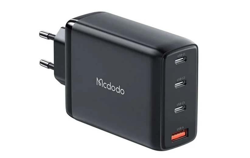 شارژر دیواری مک دودو مدل CH-0771 جزء دیگر محصولات بالا ردهی برند مذکور محسوب میشود که به صورت تک رنگ مشکی به فروش میرسد. این شارژر دارای سه پورت USB Type-C و یک پورت USB-A است. سازندهها از فناوری GaN برای شارژ این محصول استفاده کردهاند. این محصول شبیه به مورد قبلی در این مقاله، از فناوری شارژ سریع هم پشتیبانی میکند.