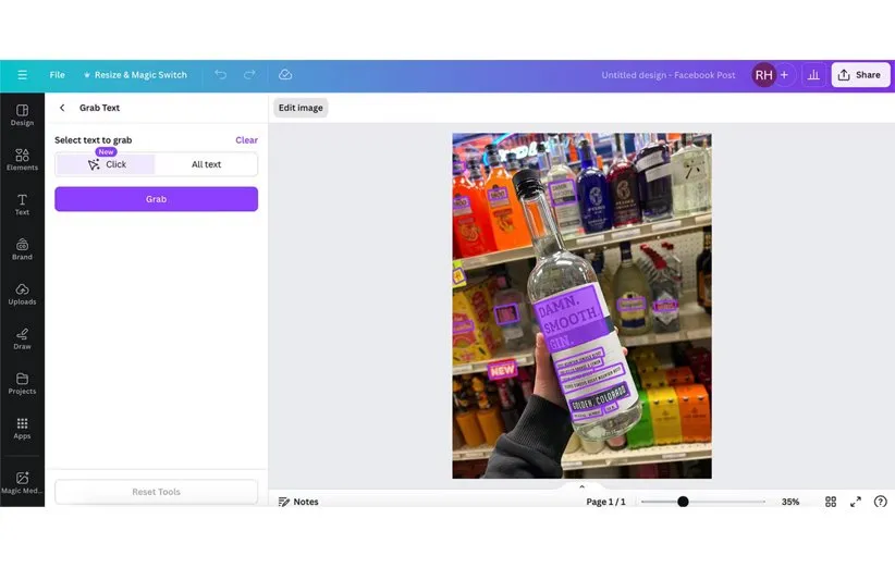 استفادهی مورد علاقه من از Grab Text پس از ایجاد یک تصویر هوش مصنوعی با متن در آن است. اکثر تولیدکنندگان تصویر هوش مصنوعی نمیتوانند متن خوانا را به زبان انگلیسی تولید کنند. Grab Text بهترین ابزار برای رفع متن نامفهوم هوش مصنوعی است که من پیدا کردهام، اما میتوانید از آن برای متن معمولی در پروژههای ایجاد شده Canva یا عکسهای آپلود شده نیز استفاده کنید. تصویر را با متن انتخاب کره و Edit Image»» Grab Text را انتخاب کنید.