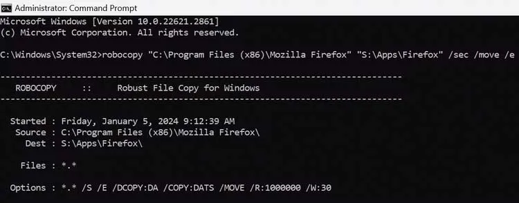 بعد از انجام این کار، باید Enter بزنید و به همین سادگی، برنامه موردنظر به مقصد جدید منتقل میشود. به عنوان مثال برای آدرسهایی که به عنوان نمونه نوشتیم، باید چنین دستوری بنویسید.