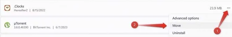 بعد از پیدا کردن نام برنامهای که میخواهید جابجا کنید، روی آیکن سهنقطه کلیک کنید و سپس گزینهی Move را انتخاب کنید.