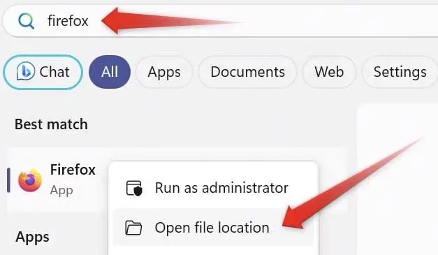حالا باید روی آیکن اپ راستکلیک کنید و سپس Open File Location را انتخاب کنید. این کار شما را راهی پوشهی اصلی میکند.