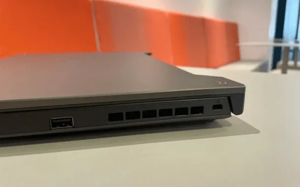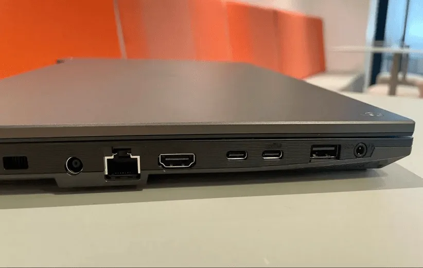 هنگامی که شما صفحهی لپتاپ را باز میکنید، یک بریدگی در بخش بالای صفحه نمایش مشاهده خواهید کرد که جایگاه وبکم با وضوح تصویر 720p است. در سمت چپ لپتاپ، یک پورت برای آداپتور برق، یک پورت Ethernet، یک پورت HDMI 2.0، یک پورت USB 3.2 Type-A، یک جک ۳.۵ میلیمتری، یک پورت USB 3.2 Type-C و یک پورت تاندربولت ۴ وجود دارد. در سمت راست دستگاه تنها یک پورت USB 3.2 Type-A قرار گرفته است.