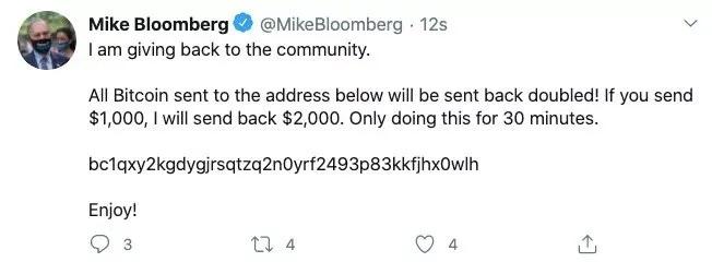 توییتی که با حساب کاربری ایلان ماسک منتشر شده بود وعده میداد هر کس هر تعداد بیتکوینی که به این حساب بفرستد، دو برابر آن را دریافت خواهد کرد. در اکانت توییتر بیل گیتس هم توییت مشابهی منتشر شد و هر دو اکانت بعد از پاک شدن این توییتها به سرعت توییتهای جدیدی را پست میکردند. در ادامه میتوانید بخشی از توییتهای منتشر شده را مشاهده کنید.