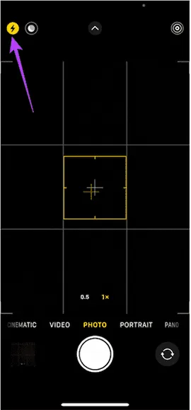 برای خاموش کردن فلاش دوربین همانند تصویر بالا، روی گزینهی اشاره شده ضربه بزنید. به همین سادگی!