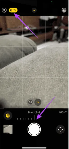 مرحلهی پنجم: در نهایت روی دکمهی سفید مخصوص به عکس گرفتن ضربه بزنید تا بتوانید حالت عکاسی در شب آیفون را تست کنید.