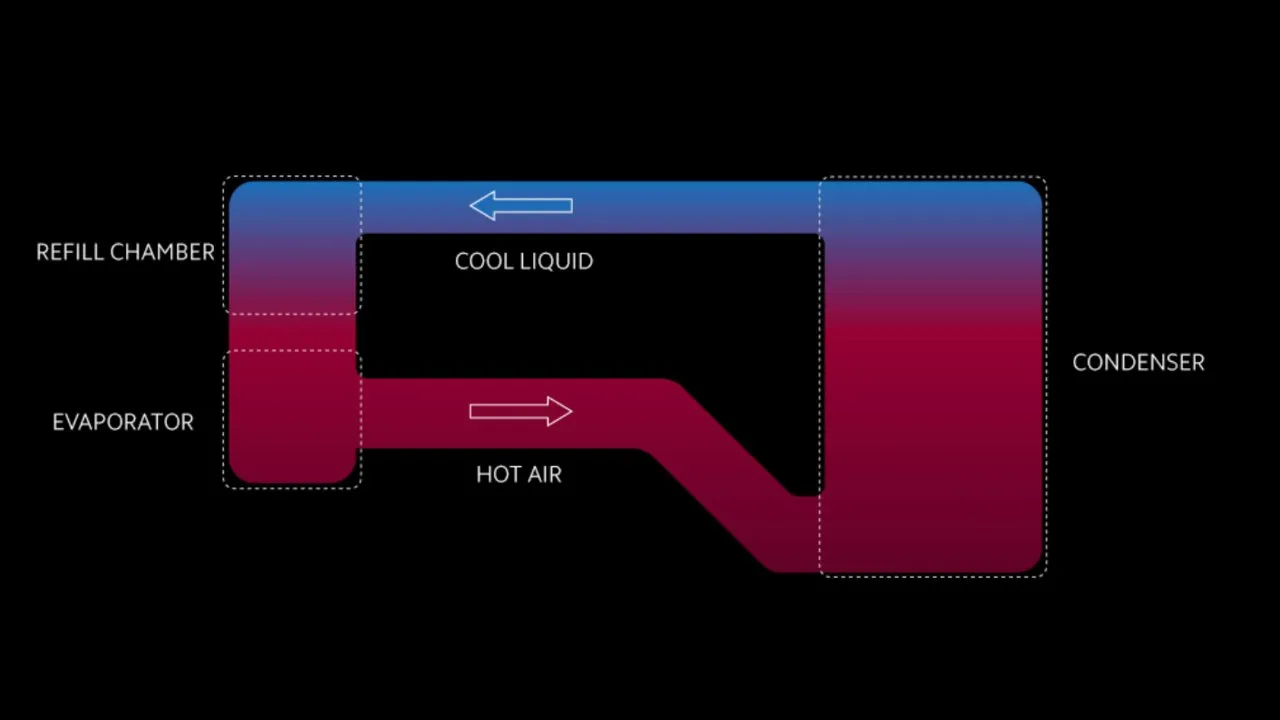 یک لولهی مسی مسطح حاوی مایع، مستقیما بالای پردازنده قرار میگیرد تا گرمای آن را جذب کرده و مایع درون خود را به بخار تبدیل کند. سپس هنگامی که این لوله در تماس با قطعات خنکتر محفظه قرار میگیرد، بخار متراکم شده و دوباره به مایع تبدیل میشود.