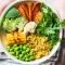 یک فنجان نخود سبز پخته شده حاوی ۹ گرم پروتئین است. علاوه بر این، ۲۵ درصد از نیاز روزانهی بدن شما به فیبر، ویتامین A و ویتامین C را تأمین میکند که همگی برای سلامتی بدن مفید هستند. شما فقط به یک و نیم فنجان نخود آبپز نیاز دارید تا به میزان کافی پروتئین گیاهی دریافت کنید.