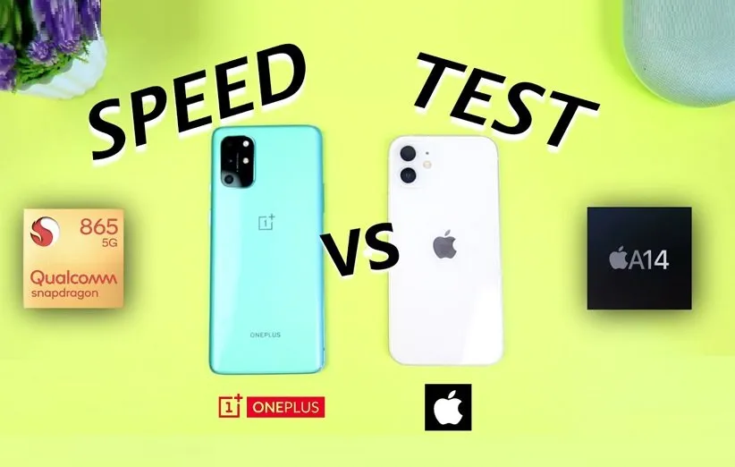 مقایسهی سرعت آیفون ۱۲ با وانپلاس ۸ تی