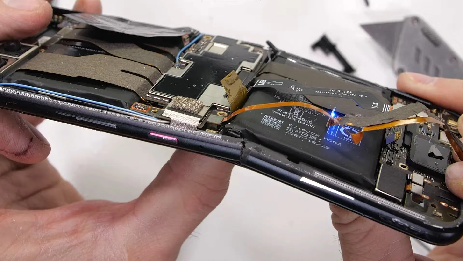 با توجه به آنچه که در ویدیو مشاهده کردیم، به نظر میرسد مشکل از بخش میانی فریم گوشی، در بخش خطوط آنتن و پورت USB-C بوده باشد که راگ فون 5 دقیقا از همان محل خم شد و شکست. بعد از انجام این تستها اما زک نلسون تصمیم گرفت گوشی را کالبدشکافی کند تا راز مهمی را که پشت عملکرد بسیار ضعیف یکی از بهترین گوشیهای گیمینگ سال 2021 در تست مقاومت وجود دارد برملا کند.