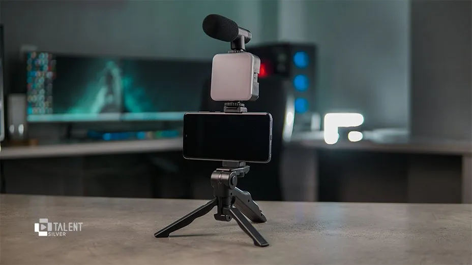 سهپایهی ارائه شده در این پکیج تنها نقطه قوتی که دارد، فرم مربوط به در دست گرفتن آن است که برای فیلمبرداری ولاگ کار را راحتتر میکند. میکروفون ارائه شده هم دارای ورودی جک 3.5 میلیمتری است و کابل اتصال به گوشی هم همراه با آن ارائه میشود. این میکروفون با وجود اینکه ظاهر حرفهای دارد، اما همانطور که میتوانید بشنوید، کیفیت صدای بسیار پایینی دارد.