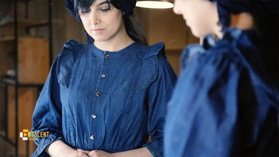 قبل از شروع باید بدانید که لباسهای جین همیشگی بوده و بدون تاریخ و امضا هستند. این پیراهن جین از برند بنیس است. جنس پارچهی لباس جین کاغذی بوده و طراحی بسیار جذابی هم دارد. یقهی آن گرد است و با ۵ عدد دکمه باز و بسته میشود. در قسمت کمر پیراهن کش دوخته شده است و قسمت مچهای آستینها نیز چین خورده و کشدوزی شده هستند.