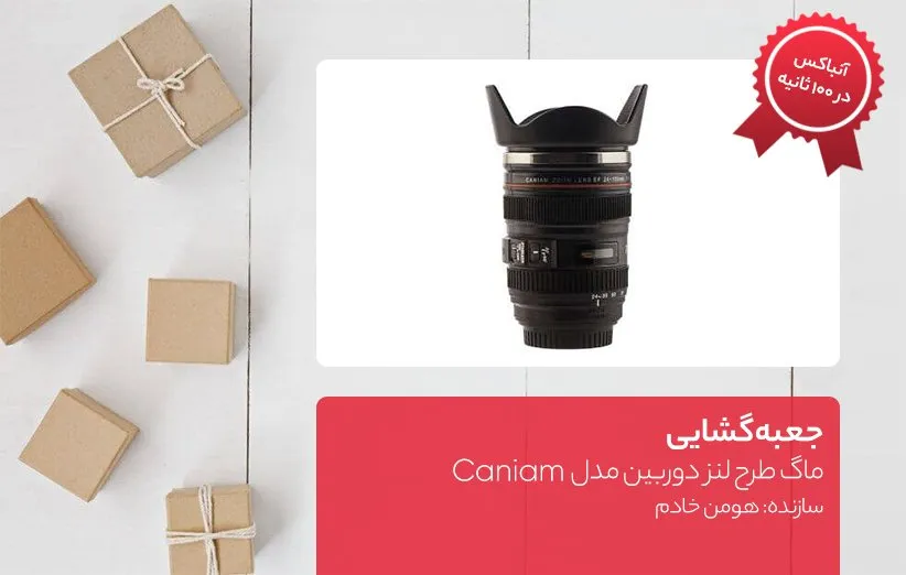 جعبهگشایی ماگ طرح لنز دوربین مدل Caniam 28-135mm