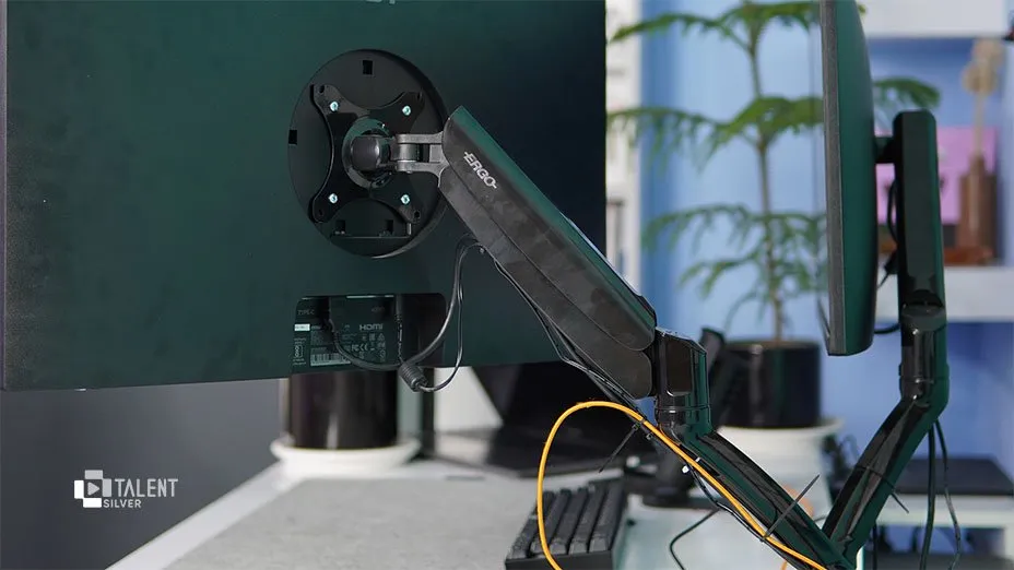 این پایه به وسیله 4 پیچ به پشت مانیتور وصل میشود و بنابراین قبل از خرید باید ببینید آیا در پنل پشتی مانیتور چنین بخشی وجود دارد یا نه. زیرا اگر مانیتور چنین قابلیتی نداشته باشد، طبیعتا نمیتوانید از این پایه برای مانیتور موردنظر بهره ببرید.