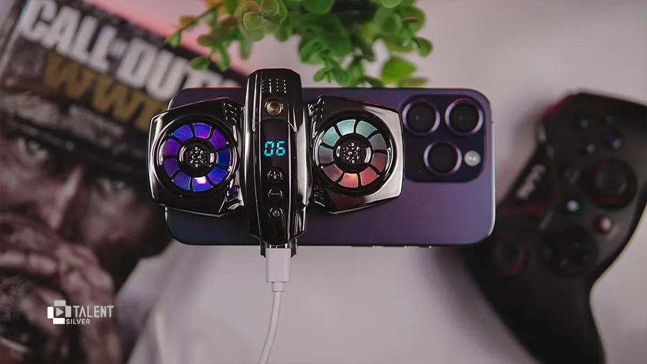 زمانی که میخواهید این خنککننده را روی پنل پشتی قرار دهید، توجه کنید که فنها در محدودهای که پردازنده تعبیه شده، قرار بگیرند. خنککننده گوشی K4 RGB دارای باتری داخلی نیست و بنابراین برای تامین انرژی آن باید از شارژر یا پاوربانک بهره ببرید. در ضمن یک خروجی USB هم در اختیار شما قرار میدهد که همزمان با استفاده از آن، میتوانید گوشی را هم شارژ کنید. همانطور که در ویدیو میتوانید ببینید، هولدر ارائه شده برای خنککننده گوشی K4 RGB به شما اجازه میدهد که مثلا گوشی را روی یک استند قرار دهید.