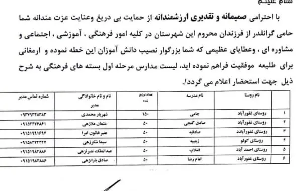 اهدای کیف و لوازمتحریر از طرف مدیر مدرسه به عنوان یک جایزه برای تلاش دانشآموزان مطرح می شود و در اکثر مواقع توزیع بین همه دانشآموزان انجام میشود تا تفاوتی میان آنها احساس نشود.