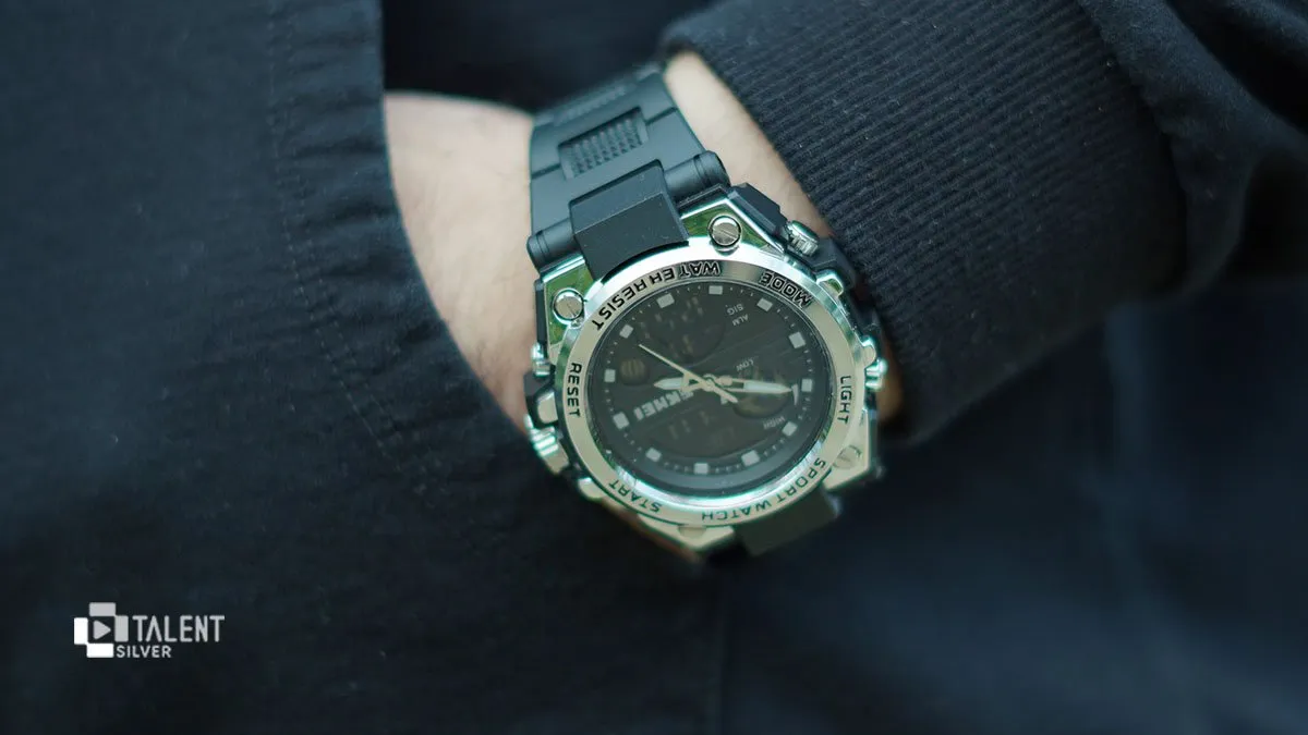 محصولی که در این ویدئو بررسی میکنیم برای علاقهمندان به ساعتهای ظریف مناسب نیست. چون ساعت مچی عقربهای مردانه اسکمی مدل 2031 SI سایز بزرگی دارد و از طراحی معروف جیشاک الهام گرفته است. بنابراین اگر از علاقهمندان به ساعتهایی نظیر جیشاک هستید میتوانید این محصول اسکمی را هم در نظر داشته باشید. ابعاد بدنهی این محصول ۵۲ میلیمتر است و ضخامت آن هم ۱۷ میلیمتر در نظر گرفته شده است. چهار دکمه در دو طرف این ساعت طراحی شده که از آن میتوانید برای تغییر مود و روشن کردن بکلایتها استفاده کرد. علاوه بر اینها یک اهرم نسبتا بزرگ برای تنظیم عقربهها هم وجود دارد. این ساعت تا ۵ اتمسفر ضدآب است که چیزی معادل سالم ماندن آن زیر باران را تضمین میکند. بندهای این ساعت هم ساده نیست و کیفیت قابل قبولی دارد.