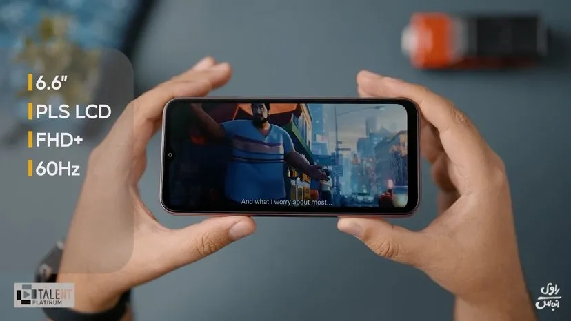 کیفیت نمایشگر این گوشی در کل متوسط محسوب میشود. البته با وجود اینکه نسبت به گوشیهای کمی ضعیفتر در این زمینه وضعیت بهتری دارد، اما طبیعتا قرار نیست با نمایشگر فوقالعادهای روبرو شویم. نمایشگر این گوشی 6.6 اینچ اندازه دارد که مبتنی بر پنل PLS LCD است. این نمایشگر رزولوشن FHD+ و رفرشریت 60 هرتز را ارائه میدهد. در مورد دقت رنگها این نمایشگر قرار نیست رنگها را به طور زنده و جذاب نمایش دهد ولی برای اکثر کاربران کیفیت خیلی خوبی ارائه میدهد.